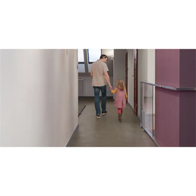 TARALAY INITIAL COMPACT is a multi- layered vinyl floorcovering, available in 2m wide sheet, with a group T wear rating. The product comprises a compacted backing reinforced with a glass fibre and a printed design that is protected by a transparent wear layer (0.70 mm thick). It offers 6 dB sound insulation and an indentation resistance of 0.03 mm. It is treated with Protecsol®, a UV cured surface treatment, which facilitates ease of maintenance and eliminates permanently the need for acrylic emulsion (metallisation). These products do not contain any heavy metals or CMR 1&2 and are 100% compliant with REACH. The products emission rate of volatile organic compounds is < 10 µg/m3 (TVOC after 28 days – ISO 16000-6). It is 100% recyclable.