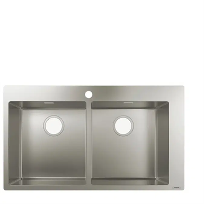 • Surfaces: - 43303800 Stainless Steel Specification: • cut-out dimensions: 845 x 480 mm • material: stainless steel • number of bowls: 2 main bowls • predrilled tap hole • cabinet size: 90 cm • type of installation: flat on the countertop (self-rimming) or flush-mount installation • tap ledge reinforcing for a tight and stable seating of the kitchen mixer • corner radius: 10 mm • sink depth: 190 mm • waste set not included - please order one waste set from the required parts
