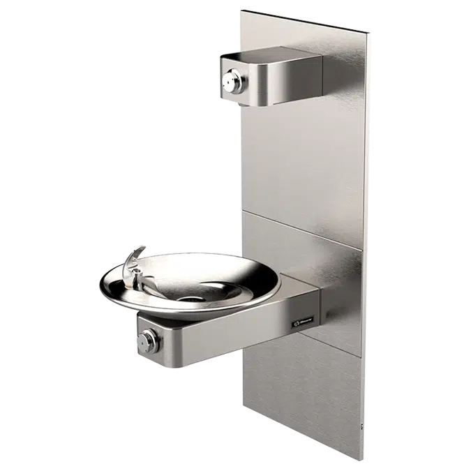 The Haws 1001MS-1920 stainless-steel ADA vandal-resistant drinking fountain and bottle filler uses patented stainless steel push-button valve assemblies allowing for front access stream adjustment as well as cartridge and strainer access. Wall mounted MS (mounting system) allows for front access of plumbing. This swirl bowl designed fountain offers the 'only' all stainless-steel valve body that is machined out of solid bar stock, is fully serviceable through the front of the push button assembly offering access to the water control cartridge and integral water supply strainer, and has front access to the water stream height adjustment for easy maintenance without having to remove the valve.