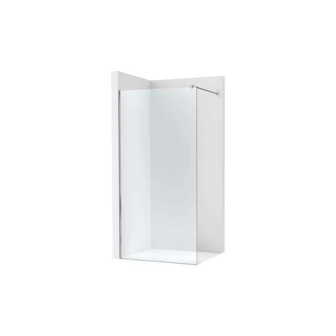 DF - Fixed panel for shower. A collection of shower screens with sliding-, hinged- and folding-doors based on simple and pure lines. Finished in transparent tempered glass (6 mm thickness) and polished silver profiles.