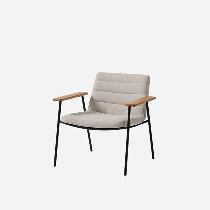 XAIL - Loungesessel mit niedriger Rückenlehne, Vierfußgestell und Armlehnen aus Holz (mit horizontalen Ziernähten)