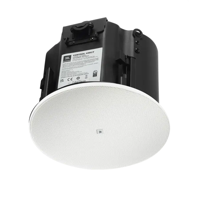 Der JBL Control 426C/T ist ein Zwei-Wege-Koaxial-Deckenlautsprecher mit 6,5-Zoll-Tieftöner und integriertem Gehäuse, der sich ideal für den Einbau in die meisten Deckenhohlräume eignet. Die integrierte CRBI™-Technologie sorgt für einen gleichmäßigen, satten Klang von 110° im Hörbereich. Ein vollflächiges magnetisches Gitter fügt sich nahtlos in moderne Einrichtungsstile ein. Optional sind schwarze und quadratische Gitter erhältlich. Zu den mechanischen Verbesserungen gehören neu gestaltete Anschlussabdeckungen mit Kabeleinführungen oben und seitlich sowie ein äußerst zuverlässiges neues Dogear-Design, das für eine Vielzahl von Deckenstärken geeignet ist. Der JBL Control 426C/T verfügt über einen Transformator für 70-V-/100-V-Anwendungen und Anwendungen mit niedriger Impedanz.