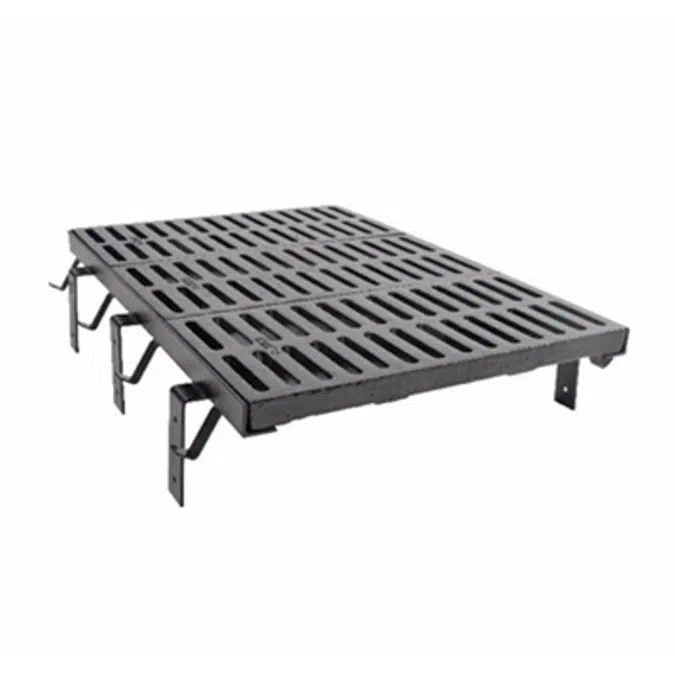 MIFAB® T2400-F Serie 24 Zoll breites Rahmen- und Gittersystem, erhältlich in 12 Zoll langen Schritten mit einer hochbelastbaren Winkeleisenrahmenbaugruppe (1¾ Zoll x 1¾ Zoll x 3/16 Zoll), an der alle Gitter befestigt und mit einem abgeschlossen werden können säurebeständige Pulver-Epoxy-Beschichtung. Jeder 12 Zoll lange Abschnitt hat zwei 1 Zoll x 3 Zoll lange Ankerlaschen / Nivelliervorrichtungen zur Befestigung im umgebenden Beton. Komplett mit MIFABs Standardgitter aus duktilem Gusseisen. Belastungsklasse F.