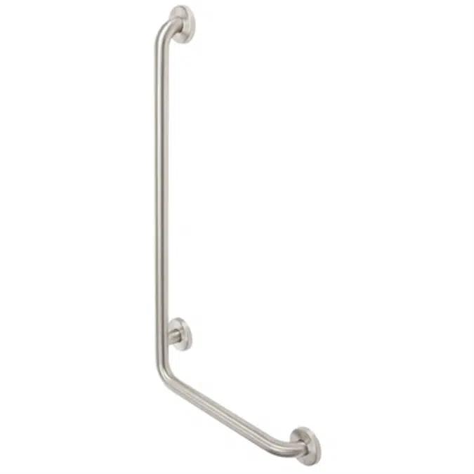 • L-shaped grab bar, suitable for use in the bathroom, particularly for public spaces. Pleasant aesthetic appearance, free of elements that can cause injuries and is characterized by an incomparable robustness. The article is made of a 1.5 mm thick satin-finished steel tube AISI 304, with bent end sections without joints. Produced without welding thus avoiding risks of oxidation. The wall anchoring is guaranteed by a fixing system made of round flanges in stainless steel AISI 304. The studs cover round-shaped flanges of 80 mm diameter, with quick interlocking, are made of stainless steel AISI 304. - G55JBL23