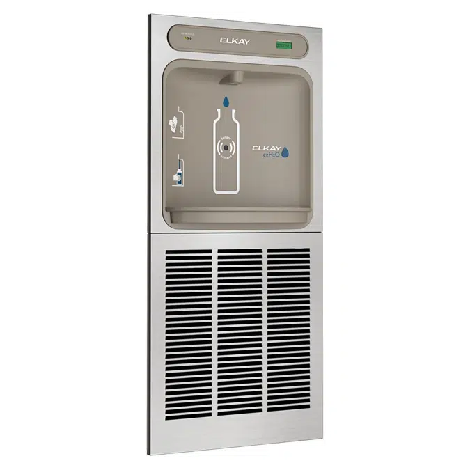 ezH2O® In-Wall Bottle Filling Station with Mounting Frame Filtered Refrigerated Stainless. Chilling Capacity of 8.0 GPH (gallons per hour) of 50 F drinking water, based on 80 F inlet water and 90 F ambient, per ASHRAE 18 testing. Features shall include Antimicrobial*, Filtered, Green Ticker™, Hands Free, Laminar Flow, Real Drain, Visual Filter Monitor. Electronic Bottle Filler Sensor activation. Product shall be Wall Mount (Inwall Frame/Plate), for Indoor applications, serving 1 station(s). Unit shall be certified to UL 399 and CAN/CSA C22.2 No. 120.