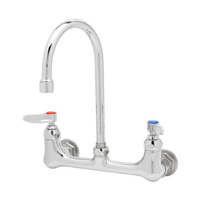 B-0331 Faucet, Wall Mount, 8" Centers, Eterna Cartridges, Swivel Gooseneck, Lever Handles