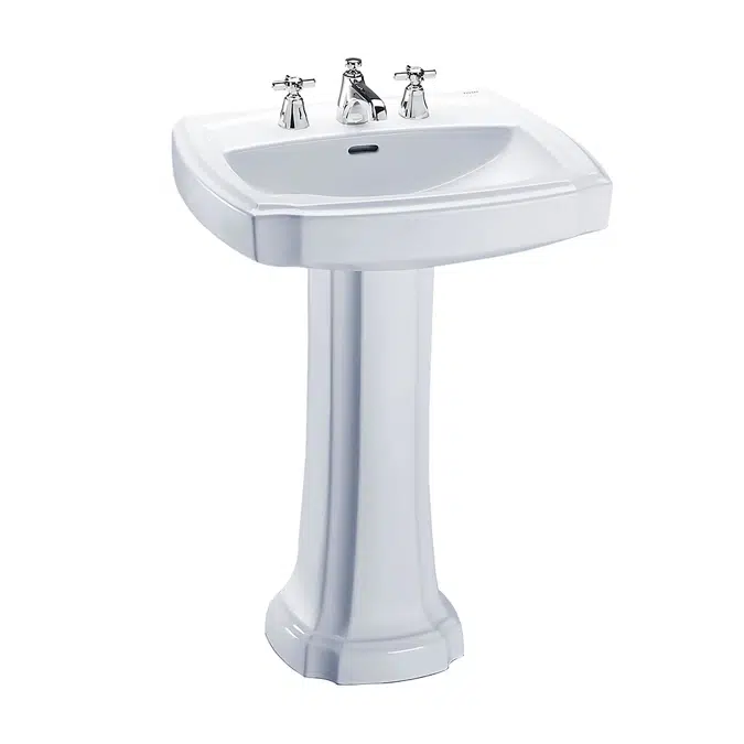 Classic and elegant, this pedestal lavatory features a spacious basin and large backsplash. Universal height.