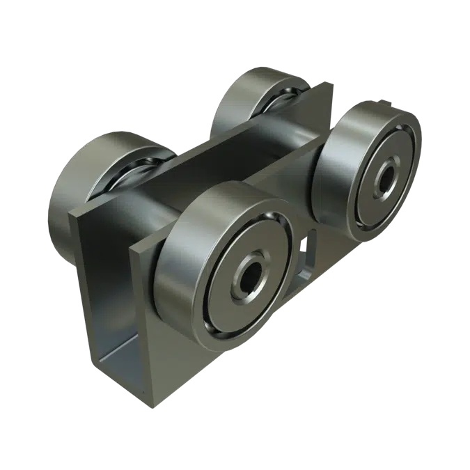 Trolley System provides mobility, reliability and economy. Stainless Steel wheel bearings require no lubrication for longevity and maintenance-free performance. Specialized supports allow trolleys to travel the full length of the strut channel track. Great for doors, tools, curtains and other applications.