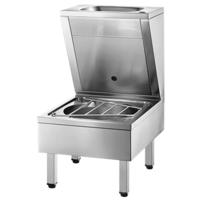 Floor-standing janitorial unit. Bacteriostatic 304 stainless steel. Polished satin finish. Stainless steel thickness: 1.0mm. Smooth surface for easy cleaning. Adjustable feet height up to 25mm. Easy to maintain: front access panel. With tap hole Ø 35mm on right side. Supplied with 1¼" waste for washbasin and 1½" for disposal sink. Without overflow. Hinged stainless steel bucket grid. CE marked. Complies with norm EN 14688. Weight: 22kg. We recommend the WRAS approved mixer: ref. G66452. 30-year warranty. [Formerly ref: 0710140000]
