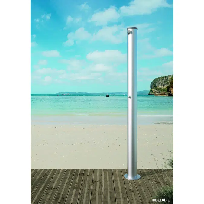 Time flow shower column: Anodised aluminium shower column ready to fit. Fitted with two showers and one foot-rinse. Bottom inlet via stopcock F¾". TEMPOSOFT 2 time flow valves for mixed water supply. Soft-touch operation. Time flow ~15 seconds for shower and ~3 seconds for foot-rinse. Chrome-plated, tamperproof, scale-resistant ROUND shower heads with automatic flow rate regulation at 6 lpm at 3 bar. Stainless steel foot-rinse with flow rate 3 lpm at 3 bar. Filters. Access panel with isolation valve and purge. Can easily be protected or taken apart in winter. Suitable for people with reduced mobility. 30-year warranty.