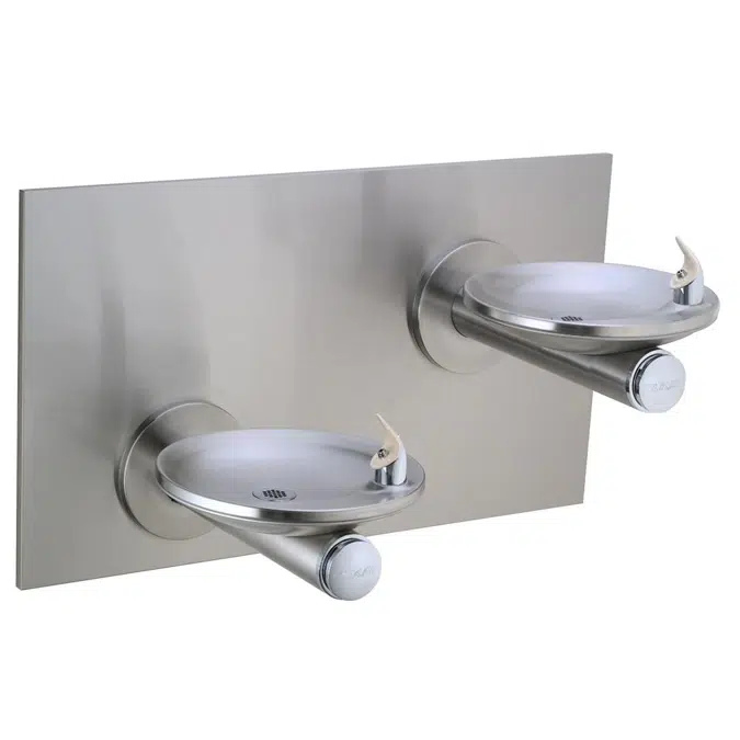 SwirlFlo® Bi-Level Reverse Fountain Mechanical Bubbler with In-Wall Carrier Non-Filtered Non-Refrigerated Stainless. Furnished with FlexiGuard ® Safety Bubbler. Mechanical Front Bubbler Button activation. Product shall be Wall Mount (On Wall), for Indoor + Outdoor applications, serving 2 station(s).