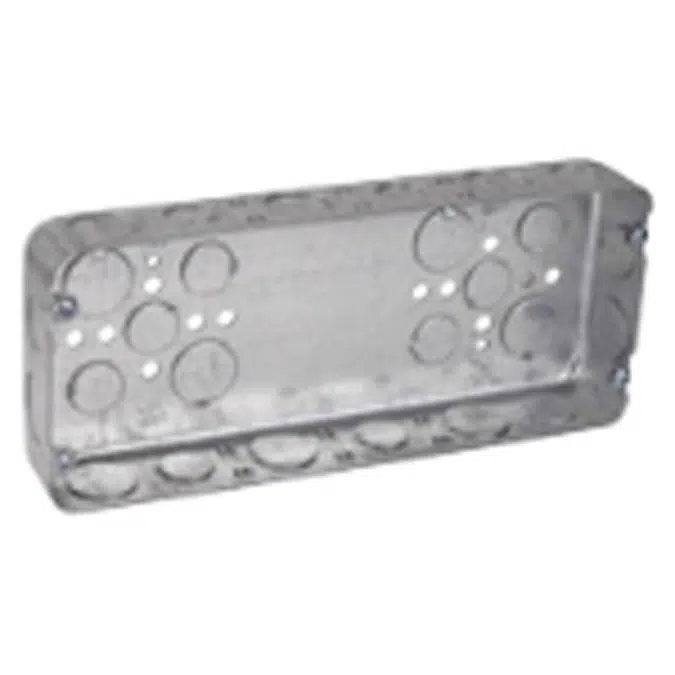 Four gang pre-galvanized steel gang box, 10-7/16 inch x 4-1/2 inch x 1-5/8 inch, 70 cuin. Drawn construction with 1/2 inch & 3/4 inch knockouts. For use with conduit.