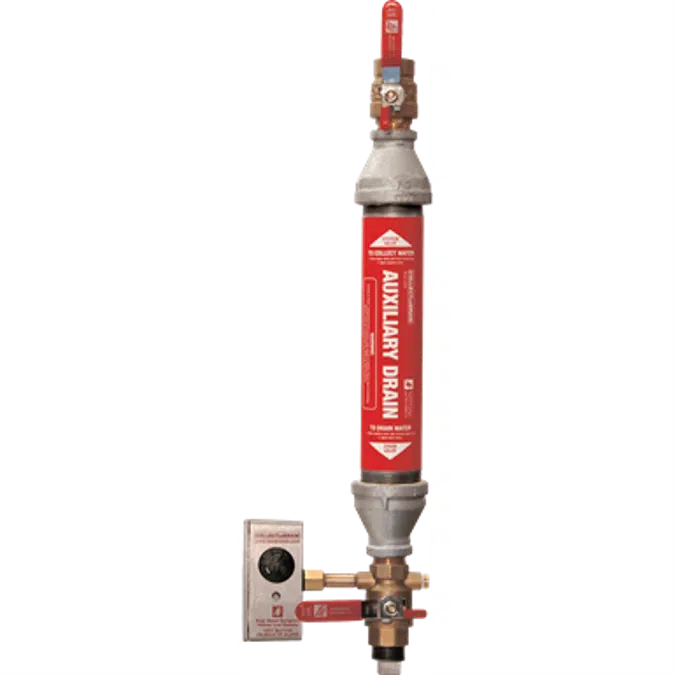 Give your occupants a sense of security and your building a consistent, appealing appearance by upgrading to a COLLECTanDRAIN®M5300 Auxiliary Drain. The M5300 is a pre-assembled auxiliary drain designed to meet NFPA 13 and 25 guidelines addressing proper drainage while offering easy identification and a consistent appearance. The COLLECTanDRAIN® M5300ALBV features a M5100ALBV?. Water Detector and Alarm that emits a visual and audible warning when the unit needs servicing.