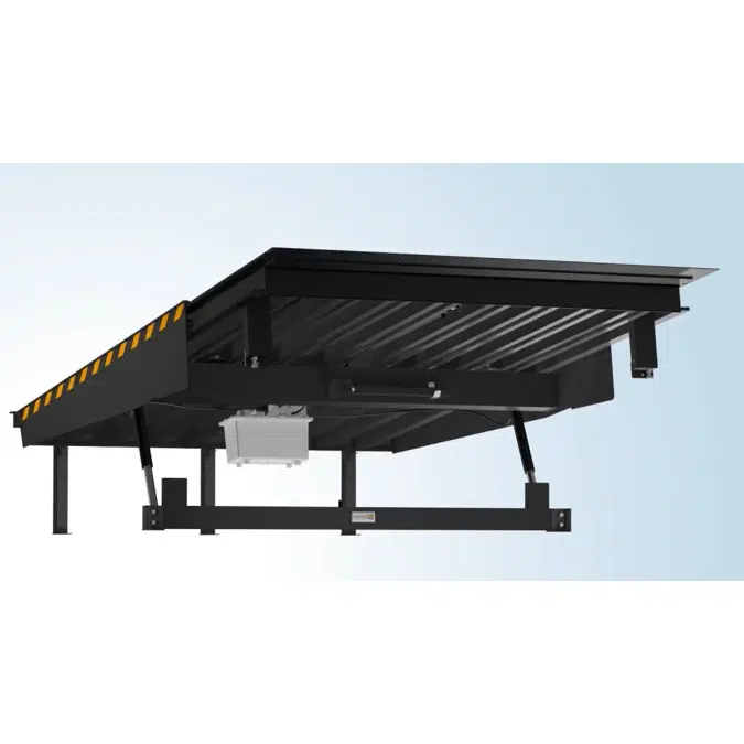 | Safety systems: | 1. Protection from misalignment - two lifting cylinders 2. Automatic locking of hydraulics in case of accidental rollback of the transport while unloading 3. Automatic locking of hydraulics when there is a power failure 4. Protection of the lip from deformation - manufacturing of the lip from a solid steel sheet 5. Protection of feet from becoming trapped - protective shutters 6. Protection of hinged part against breakage - reinforcing plates 7. Protection against sliding of the loader wheels on the dock leveller surface - lentil corrugation of hinged part and lip 8. Supporting beam for the service and repair maintenance |