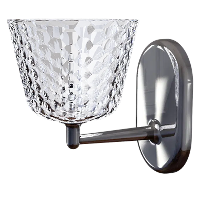 Small size Juvisy-cut lampshade in clear crystal . The body of the wall-unit is in aluminum and polished stainless steel in shiny chrome finish. The Candy Light wall unit can be right side up or upside down. Possible installation on a wall dimmer. Make sure of the compatibility of the dimmer on the total power range to make vary (for instance, 25 W for a wall unit, 100 W for 4 wall units).