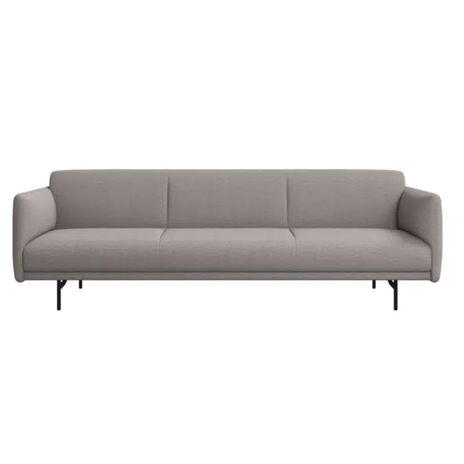 The Berne sofa from BoConcept is a modern, minimalist piece designed by Henrik Pedersen, characterized by its light, elegant, and welcoming aesthetic. It features a "floating" design supported by slim, tubular matte black metal legs.