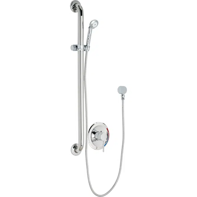 • Trim: 36" wall-mounted ADA grab bar with hand spray holder