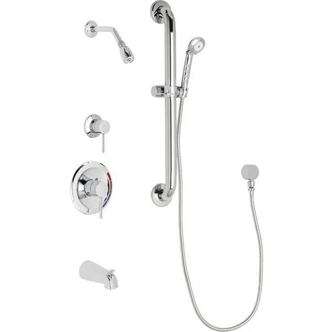 • Trim: 24" wall-mounted ADA grab bar with hand spray holder