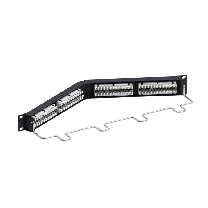 Unshielded Angled Distribution Module Panel, Cat 6, 1U, 24 port, Black
