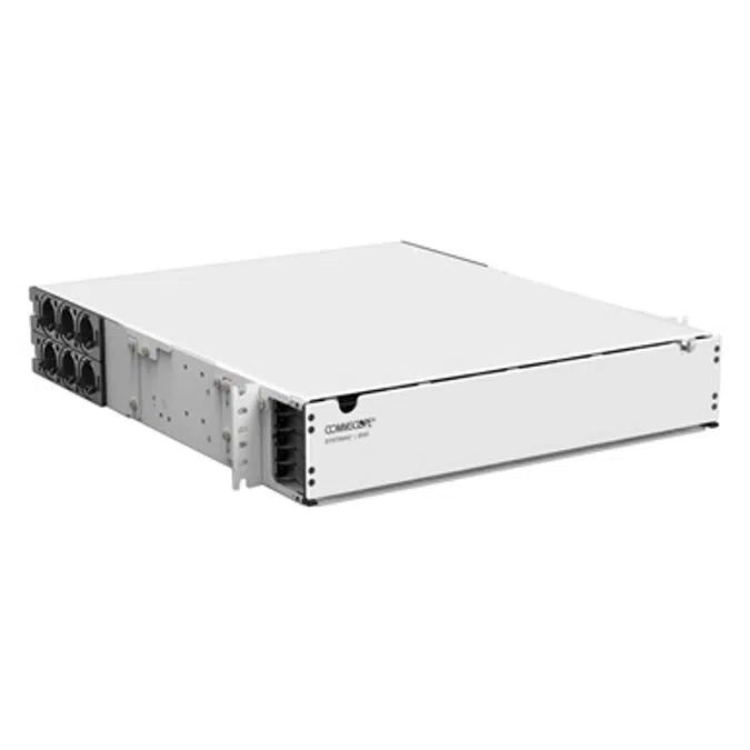 SYSTIMAX® EHD 2U sliding tray fiber panel, accepts (12) EHD ULL modules, splice cassettes or MPO panels, providing up to 144 duplex LC ports or up to 144 MPO ports, white, High Speed Migration