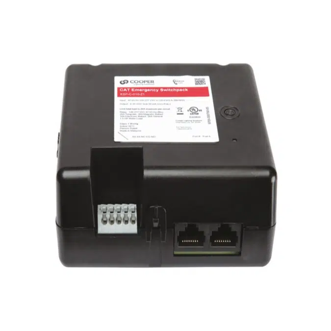 The CAT Emergency Dimming Switchpack (ESP-C-010-Z1) is a lighting control device designed to control loads powered via an emergency circuit. Each unit consists of 120-277VAC 20A latching relay used to turn on/off LED and non-LED loads and a continuous 0-10V dimming control used to dim/raise fixtures' light level. The CAT Emergency Dimming Switchpack is used in conjunction with the standard CAT Dimming Switchpack to control the lights within a space. The CAT Emergency Dimming Switchpack is equipped with two RJ 45 connectors to connect the unit to other CAT devices over standard CAT5 cables using WaveLinx CAT protocol. The unit has an elongated chase nipple that allows it to be attached either directly through a 1/2"" knockout into a junction box or inside an adjacent box for meeting specific local code requirements in ceiling plenums.
