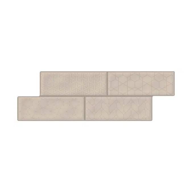 Brick en tamaño 13.6x37 cm con un diseño de estructura de borde irregular que se compone de 4 rectángulos que simulan ladrillos de tamaño 6.5x18.3 cm. Tiene 3 caras diferenciadas, ideal para uso en pared.