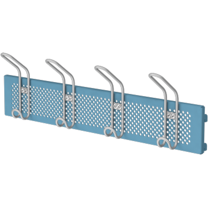 Placed on stand-alone stands or is mounted on wall rails, with or without wood details. Can be supplemented with accessories such as hook strips and dripping tray, etc. Available in 24 standard colors. Other colors can be ordered.