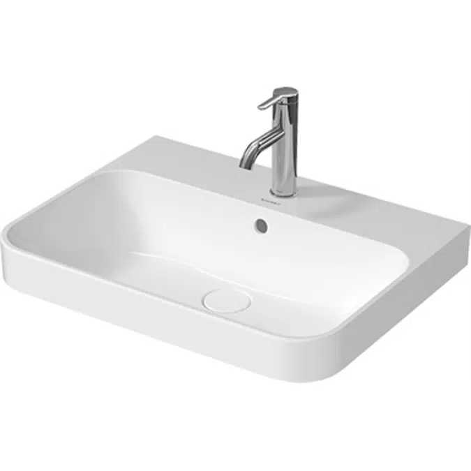 • Duravit Happy D.2 Plus Washbowl, width/length: 600 mm, White High Gloss, Rectangular, Number of washing areas: 1 Middle, Tap hole platform: Yes, Number of faucet holes per wash area: 1Middle, Overflow: Yes, grounded, Soap dispenser position: Without, WonderGliss, Incl. mounting material, Incl. push button drain assembly, Incl. ceramic drain cover - 23606000001