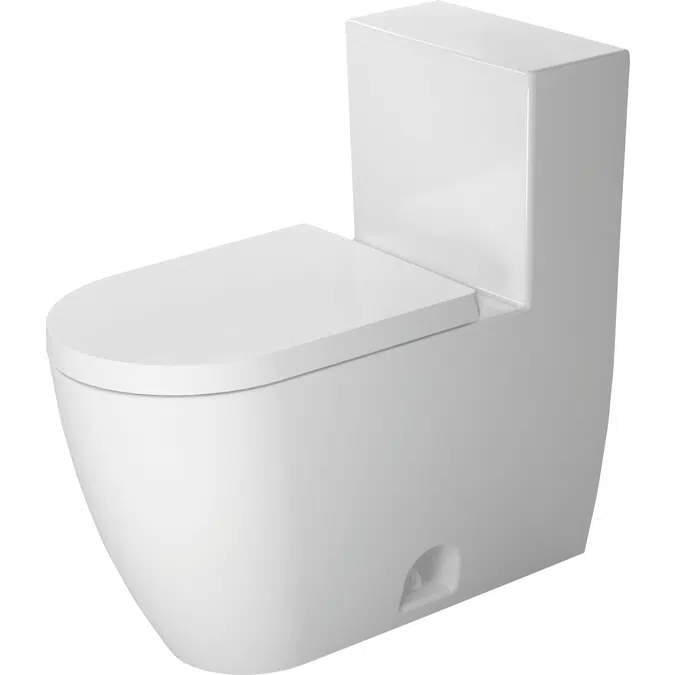 • Duravit ME by Starck One Piece Toilet, 28 3/4 ", elongated, White High Gloss, Single Flush, Flush water quantity: 1.28 gal, Siphonic, Rimless, Outlet: vertical, Trip lever placement: Left, Rough-in: 12 " - 2185010002