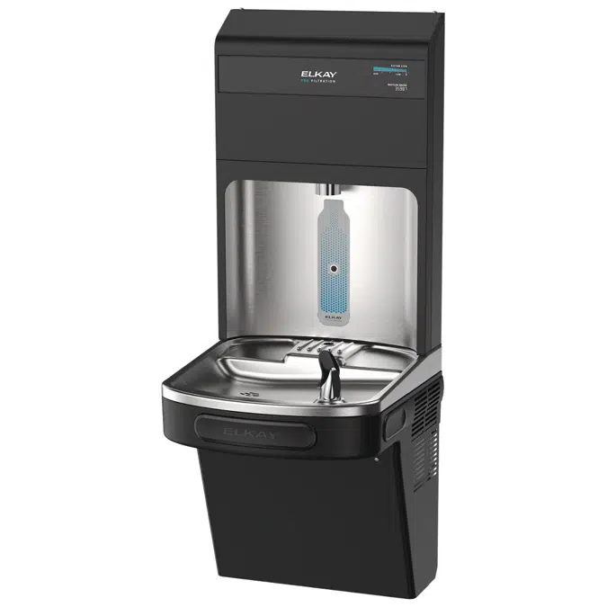 Elkay Pro Filtration® Connected Bottle Filling Station & Single ADA Cooler Refrig Dbl Ultra-Capacity Lead Reduction BK. Chilling Capacity of (gallons per hour) of 50 F drinking water, based on 80 F inlet water and 90 F ambient, per ASHRAE 18 testing. Electronic Bottle Filler Sensor with Electronic Front and Side Bubbler Pushbar activation.