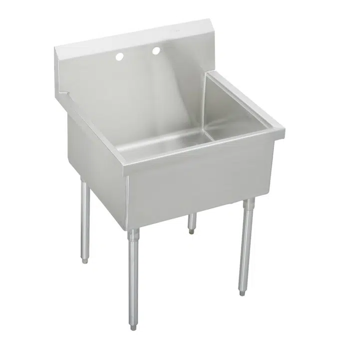 Keywords: Floor Mount Single Compartment Scullery Sink, laundry sinks, commercial sinks, 14-gauge, Type 304 stainless steel, Square corner welded compartment construction, channel rim design, resist grime, Sink compartments pitched, tubular legs, Floor Standing Scullery Sink with Two Faucet Holes