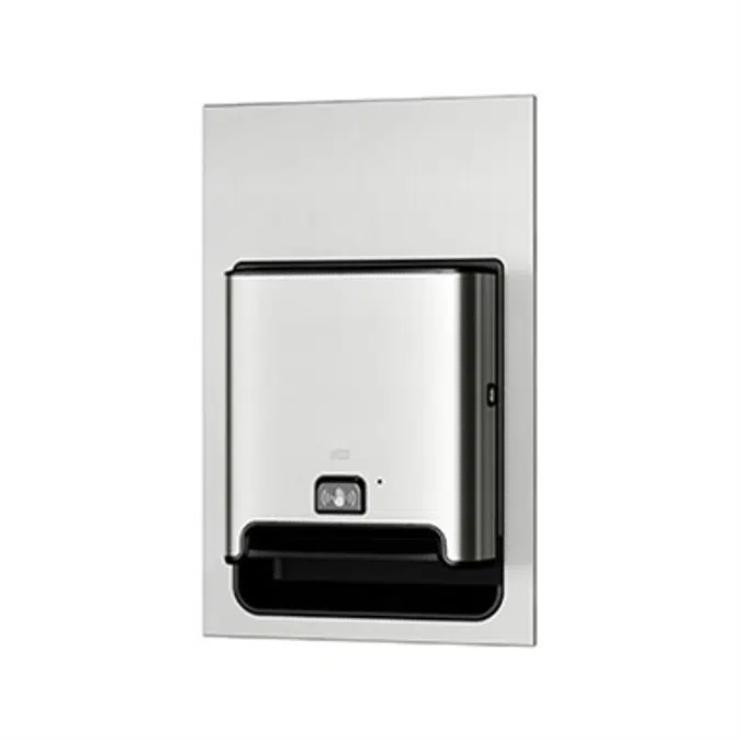 The Recessed Tork Matic® Hand Towel Dispenser in beautiful stainless steel easily adapts many recessed in-wall folded towel and waste dispensers to a high capacity roll towel system. Get excellent function and reduced towel consumption with one-at-a-time dispensing, while giving your guests a hygienic, no-touch hand drying experience. Part of the Tork Image Design™ line.