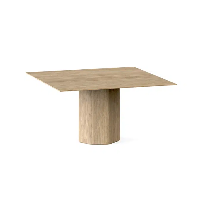 Tabletop and legs made of solid wood from European oaks with 21 mm/0.83” of section. The base is fitted with a metallic counterweight to ensure the stability of the table. The collection is also available in lacquered version (MDF) and in European oak veneer.