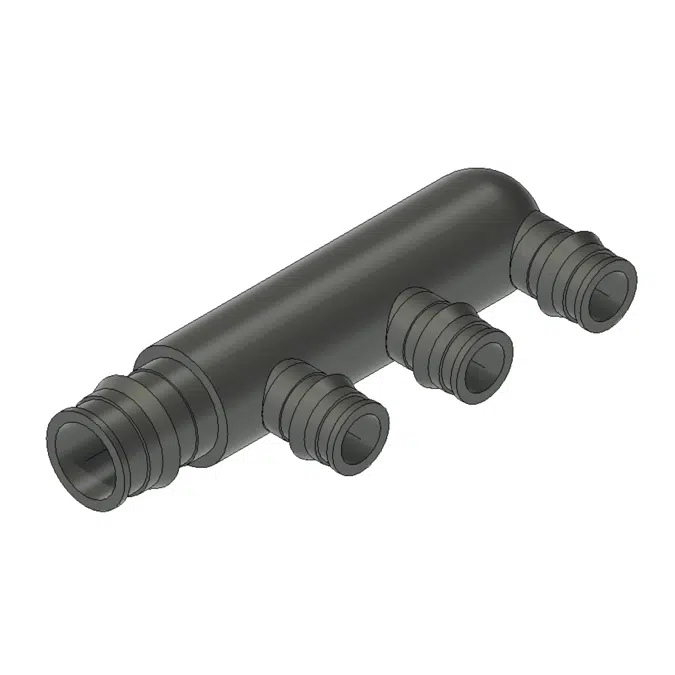 Engineered polymer (EP) branch multi-port tees are used in hot and cold domestic potable water distribution systems. The multi-port tees are available with 3⁄4" or 1" ProPEX® inlets and 1⁄2" ProPEX outlets. Note: Temperature and pressure ratings stated are hydrostatic ratings. For domestic hot-water (DHW) and DHW recirculation installations, operating conditions should not exceed 140°F (60°C) at 80 psi (5.5 bar) in accordance with ASTM F2023. For additional information regarding application specific temperature and pressure ratings, refer to the Uponor PEX Piping Systems Design and Installation Manual.