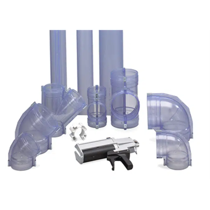 The Contain-It secondary containment piping system comprises lightweight, clear PVC split pipes and fittings that are easy to fit over primary piping systems. The Contain-It piping system can turn any piping system into a double containment piping system with ease. Its chemical resistance makes it ideal for containment purposes in corrosive piping applications.