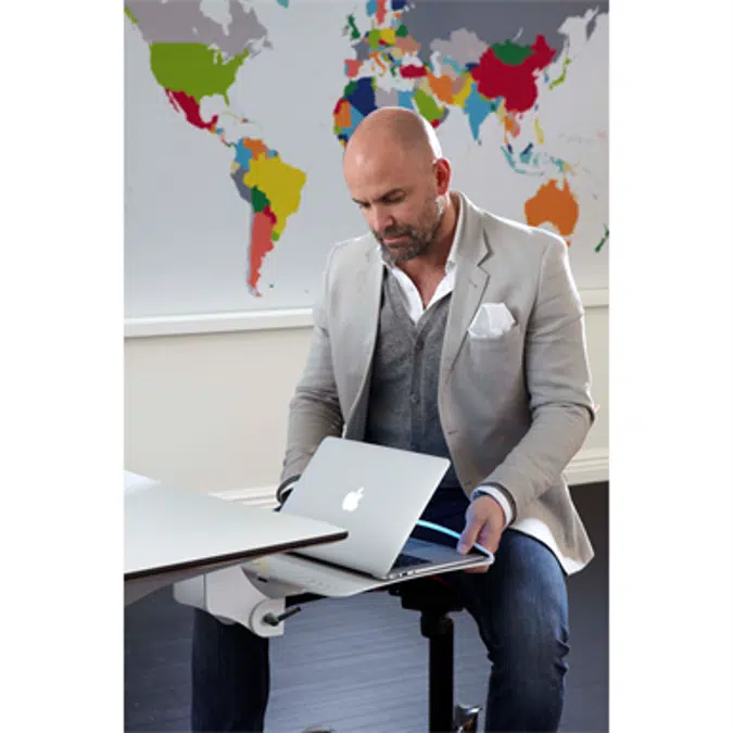 Twistable and rotatable holder for laptops with or without docking station. The vertical / horizontal tightness can be adjusted by hand.