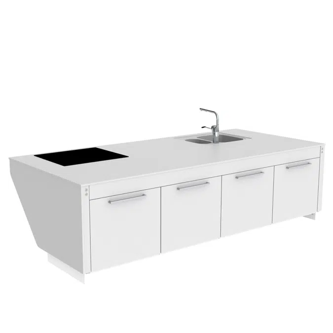 Centerlift 6490 combi module 6490-ES20S4L-253 contains of one shallow sink bowl, one shallow rinsing bowl. Prepared for glass ceramic hob with four cooking zones.