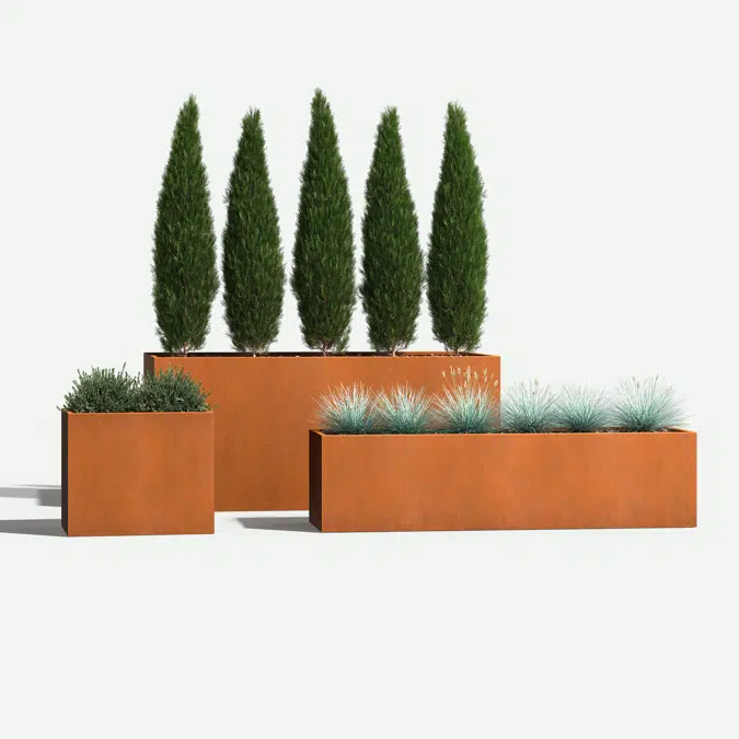 1. Weathering Steel Planters – ASTM A606 12 ga. (0.105”) sheet, formed and welded. ASTM A588 3/16” (0.1875”) may be substituted for custom projects where required. Wall reinforcement elements of the same material are attached as required.