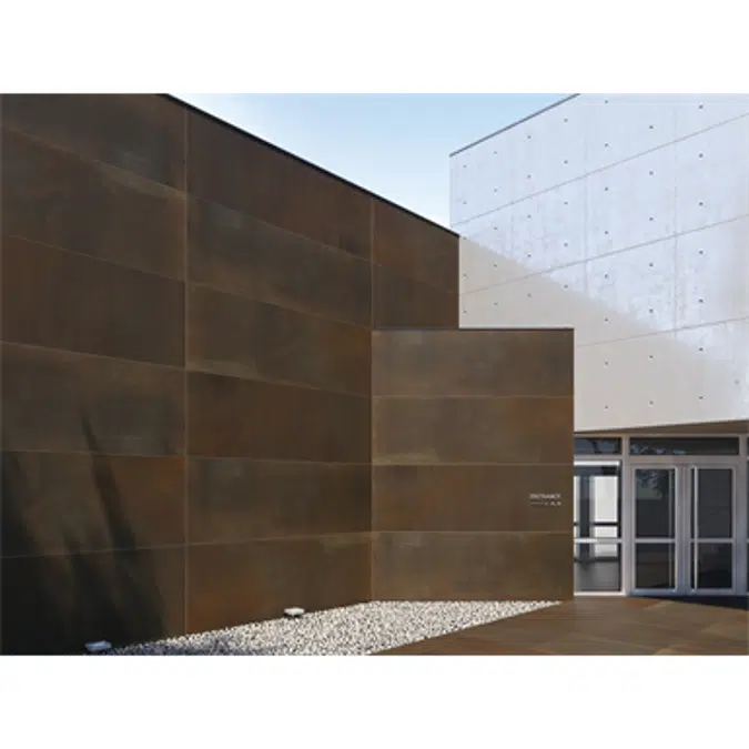 Full body porcelain tile in 3,5 and 5,6 mm thick, wathered metal effect. The largest slab is 1000x3000 mm, three colours and six different sizes available. Water absorption E<0,5 %, BIa group according to UNE-EN 14411. H&C Tiles photo-catalytic coating with air purifying, self-cleaning, and antibacterial properties available.