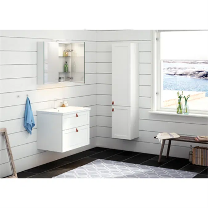 All-covering porcelain sink with generous storage area A water trap with popup-functionality that is easy to clean Soft closing drawers for a soft and silent closing Fully extendable drawers for a total overview of all your things Installation system - easy to mount - easy to adjust Same colour on cabinet frame, doors and drawers Space for plumbing behind drawers Multiple handles available as options Available in three different styles and colours Bathroom-graded MDF and/or fiberboard for moist environments