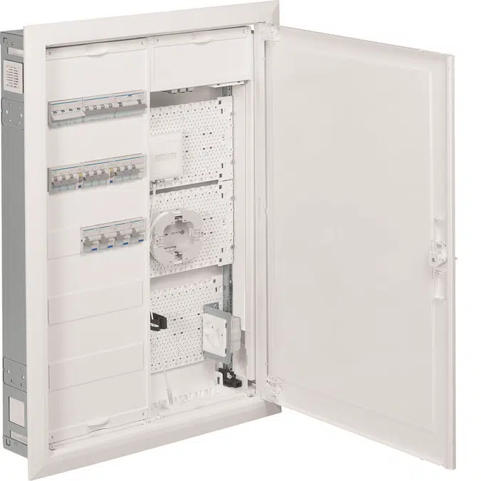 UNIVERS FW A multifunctional enclosure cabinet for all applications The Univers FW range is ideal for all flush-mounted applications in residential and commercial buildings until 125A – from energy distribution to Multimedia. Available in 6 different heights and 3 different widths, the univers FW range is intended for fixed, indoor, flush-mounting in thick walls or hallow walls. With an installation depth of only 110 mm, this new recessed enclosure offers the perfect solution for increasingly common installations in hole walls. At the same time, the need to connect more modular components and digital communication equipment is increasing. That’s why we are expanding our range of FWU cabinets Multimedia fields & doors, socket outlets and Patch panels allowing enough flexibility for all Multimedia applications, while the enclosure remains suitable to be recessed in the wall where it´s mounted.