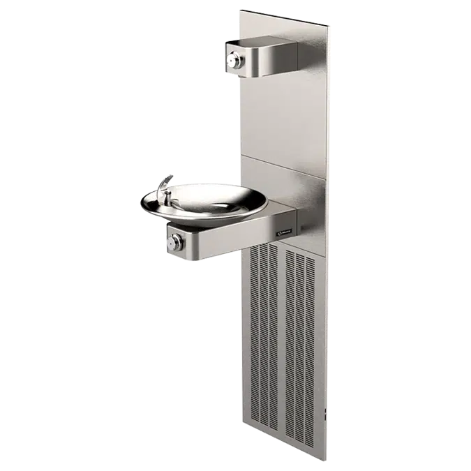 Model 1001.8P ADA vandal-resistant electric water cooler and bottle filler provides 8 gph (30.3 L) chilled water performance in an engineered stainless steel skin. This wall-mounted swirl bowl designed fountain and bottle filler offers the only all stainless-steel valve body that is machined out of solid bar stock, is fully serviceable through the front of the push button assembly offering access to the water control cartridge and integral water supply strainer, and has front access to the water stream height adjustment for easy maintenance without having to remove the valve. Outfitted with such protective features as vandal-resistant bubbler head, waste strainer, and bottom plate, this electric water cooler is quick to discourage vandals.