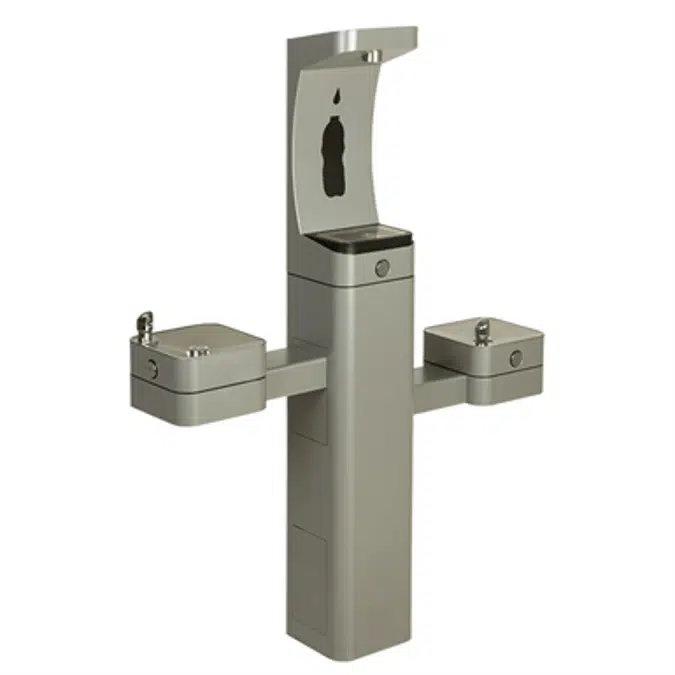 - Large-opening outdoor bottle filler with quick-fill 1 gpm flow rate