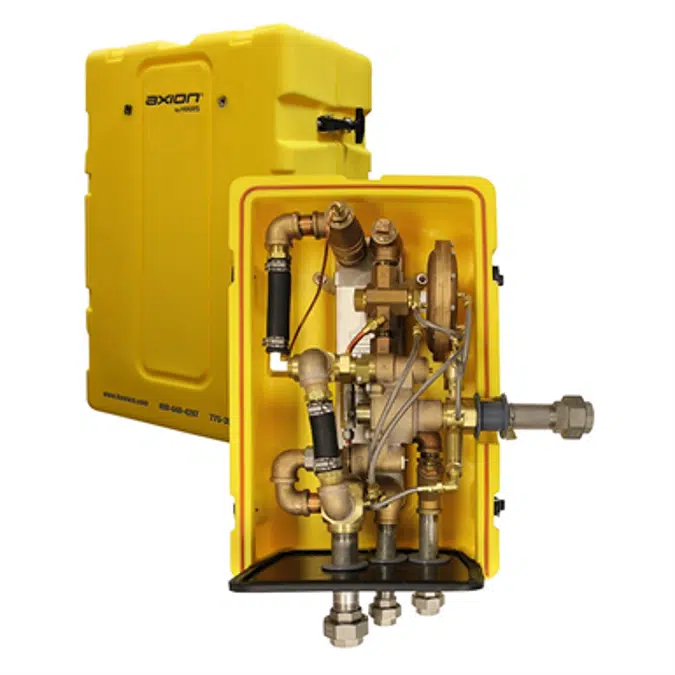 Model 9400, AXION® Steam Water Heater uses steam to create a hot water supply, then mixes the hot with cold water to supply emergency shower and eyewashes with constant tepid water with flows up to 25 gpm (95 lpm).