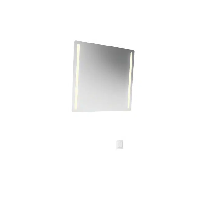Series 801 LED tilting mirror, motorised - Rectangular illuminated composite mirror with bevelled edges - Integrated splinter protection and integrated LED lighting on the right and left sides - The motorised mirror can be tilted by a maximum of 28° and can therefore be used in a standing or sitting position - for wall mounting - with two high-quality LED light profiles made of aluminium, Attached to the back of the mirror - Light colour adjustable from warm white to cool white (approx. 3000 - 6500 Kelvin), Total output approx. 10 watts - Infinitely dimmable light intensity - Control via maintenance-free wireless wall switch - Wireless wall switch can be freely positioned on the wall via adhesive mounting or integrated into a 55 mm frame in the electrical installation - Memory function: last selected light setting is saved for subsequent use - LED and ballast protected, protection class II, rating IP44 - Mirror 599 mm wide, 540 mm high and 6 mm thick - Mirrors made of laminated glass - This product contains a light source with energy efficiency class E - CE and UKCA labelling in accordance with EMC 2014/30/EU - Suitable for power grids with mains voltages between 100 and 240 V and mains frequencies of 50 and 60 Hz and 277 V for the USA