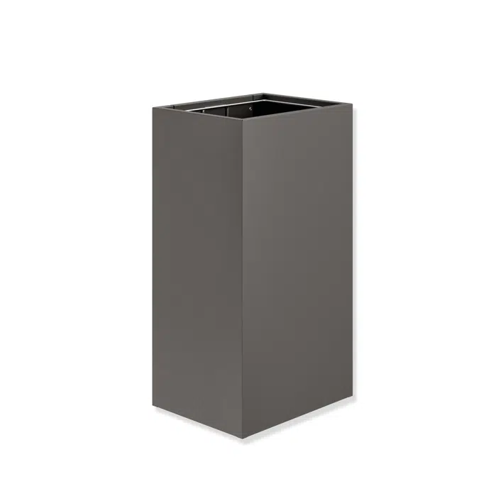 Wastepaper bin from the System 900 range - angular base body - serves as a wastebin for used paper towels - capacity approx. 60 l - invisible, integrated bag holder with pull-out function for easy insertion and removal of the bag - 340 mm wide, 620 mm high and 263 mm deep - for wall mounting - made of high-quality stainless steel, powder coated in the HEWI colours DX (matt white), DC (matt black), AY (matt light grey pearl mica) and SC (matt dark grey pearl mica) Article no.: HEWI 900.05.00360
