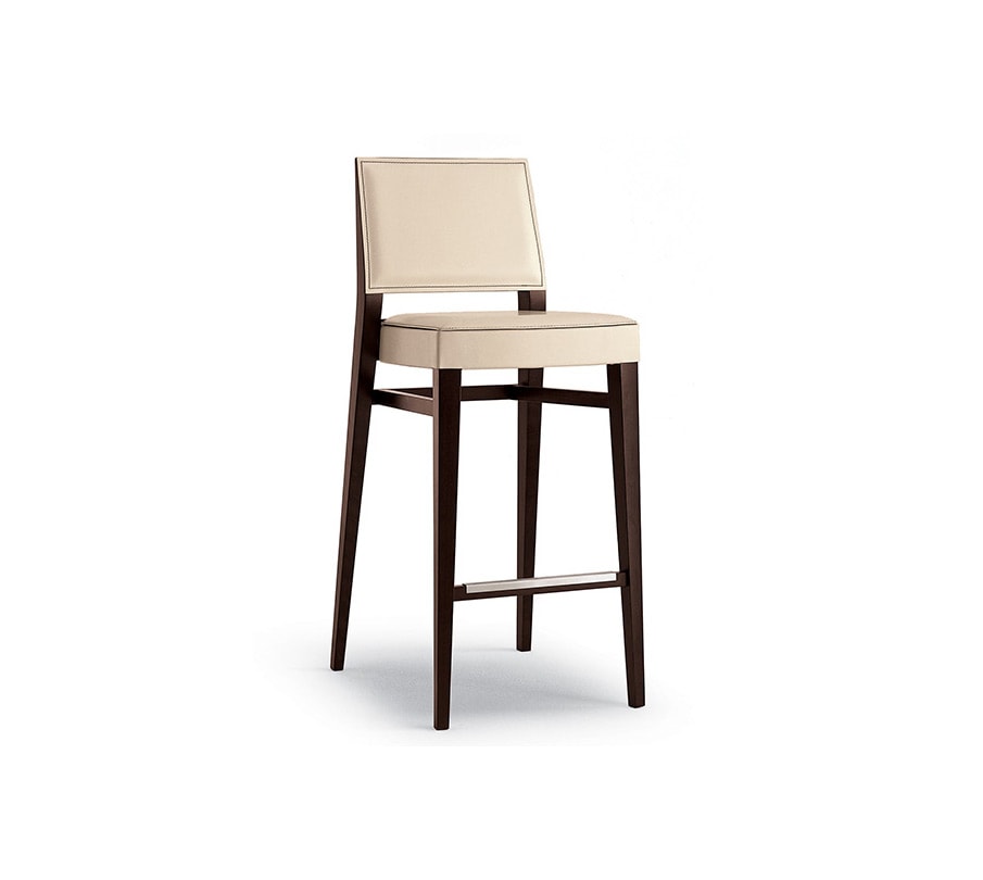 Barstool in beech with upholstered seat and inside back. With stainless steel kickplate.