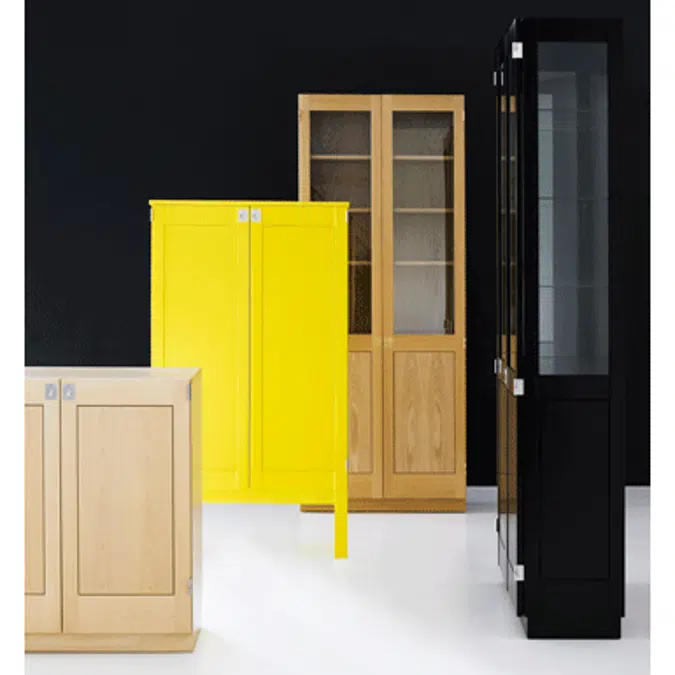 Karl Andersson & Söner has been producing and refining the KA72 storage system since 1972. The designer Göran Malmvall was Karl Andersson’s youngest son and apprentice of Carl Malmsten. Thanks to its versatility and the restrained elegance of its clean, uncluttered lines, KA72 has developed into a contemporary classic that today is found in both private homes and public spaces alike. They are made using a blockboard construction and veneered in oak, birch, ash, cherry or standard colors. The appearance can be varied by the combination of glass or wooden doors and sides, and open shelving. If the intention is to place the cabinet away from a wall, it is necessary to order a back panel to cover the back of the cabinet. The fittings are nickel-plated or made of brass. Cabinets are supplied ready assembled with adjustable screws in the plinth to ensure they stand straight and steady. Accessories to KA72 are top, tray, clothes hanger, lock and LED. KA72 is perfect in the living room, conference room, kitchen, library, dining room, coffee corner and office or lobby area and can also be used as a side table, TV bench or display cabinet, etc.