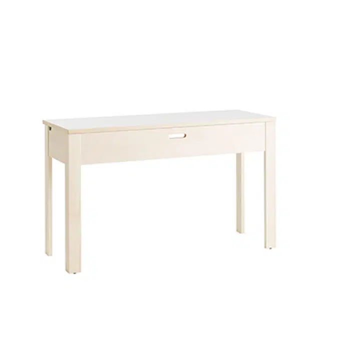 Study comes in lengths of 900, 1200, and 1400 mm and in widths of 450 and 600 mm. The table is 66 mm when it is folded. The tabletop and rim are made of blockboard with veneers in oak, birch, ash, standard stains on ash and white glazed oak or ash. Table top is also available in laminate (white, black matte, oak, birch or ash) and black desktop. The legs are made of solid wood. The tables can be linked together with the help of elastic straps that are standard. Accessories include trolleys on which up to eight tables can be stored. Use Study to furnish lecture rooms, conference locations, schools, hotels, churches etc.