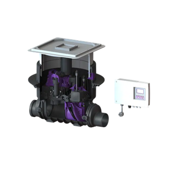 Backwater pumping station Pumpfix F With recessed cover for on-site tiling and drain Ø 110 Made of polymer, with telescopic upper section for continuous height- and level adjustment. For installation depth (D) from 486 – 640 mm, Installation area 750 × 750 mm With surface water tight polymer cover plate class A 15 and integrated floor drain. Installation kit with choice of cover. Backwater pumping station according to EN 13564 Type 3 with pump (1kW/230V) and backwater valve, pump activates during backwater, suitable for wastewater with or without sewage. Plug-and-Play control unit with connection option to building management system and alarm, display for operating status and battery back-up, protection type IP 54, with integrated self diagnosis system SDS, motorized backwater flap, Pumpfix F body rated protection type IP 68 (3 m, 24 h). Power cable length: 5 m (15 m available on request). Note: With S1-pump, without macerator, capable for continuous operation: info@kessel.com (on request) Accessories: Extension sections for installation in waterproof concrete see page 36 • Backwater valve: Pumpfix F Komfort • Body: black • Nominal diameter: DN 100 (OD 110 mm) • Installation type: for underfloor (concrete slab) installation • Power cable length: 5 meter (15 m available on request) • Delivery time: on stock • Weight approx. 20 kg.